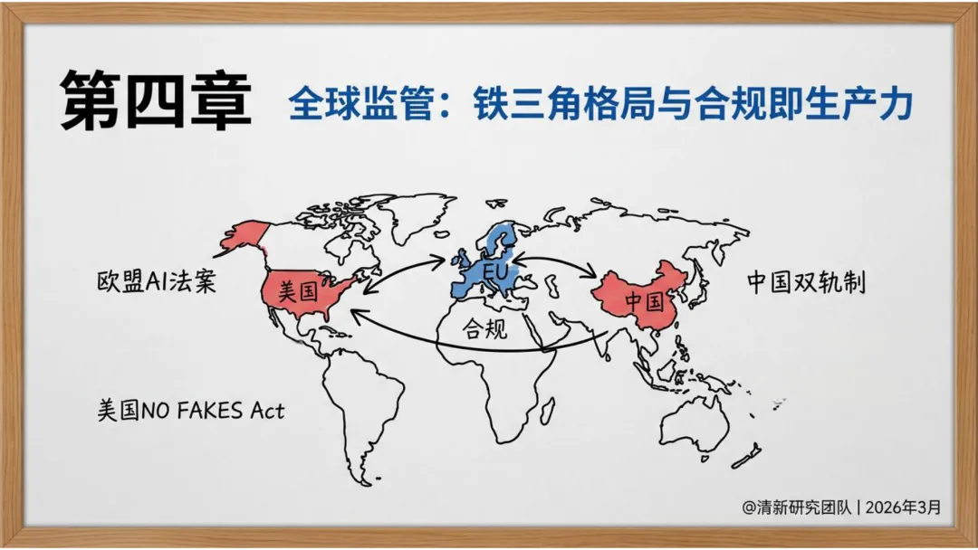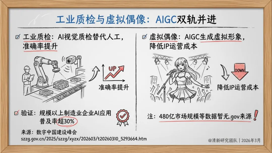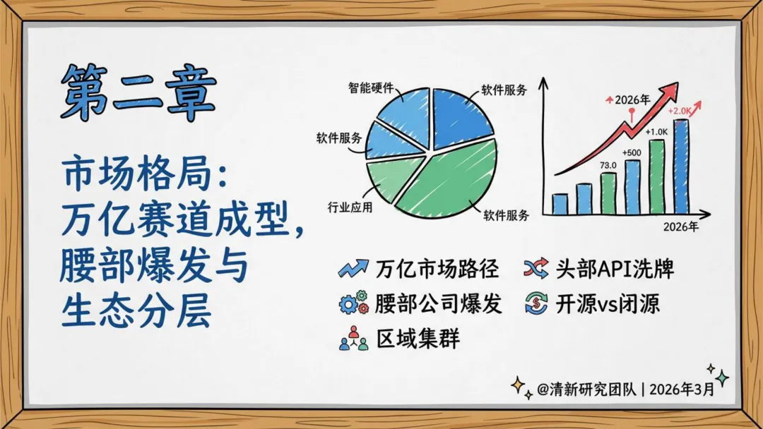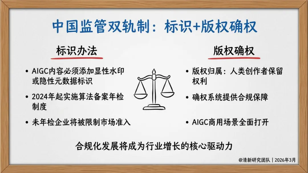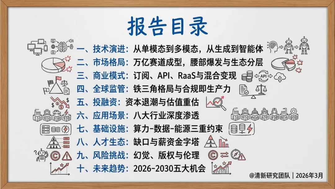 导读:2026 年生成式 AI 行业迈入规模化发展阶段,用户规模达 6.02 亿,核心产业规模突破 1.2 万亿元,相关企业超 6200 家,智能算力规模达 1590EFLOPS,行业生态日趋成熟。技术层面实现多模态架构统一、上下文窗口跃迁等关键突破,端侧轻量化与训推一体技术推动应用落地。市场呈现头部洗牌与腰部爆发并存格局,垂直行业应用成为增长主力,营销广告、医疗影像、金融研报等八大领域深度渗透。商业模式多元演进,订阅制、API 按量计费与 RaaS 按结果付费并行,混合变现模式逐步成熟。全球监管形成铁三角格局,欧盟 AI 法案生效与我国双轨制监管推动合规成为核心竞争力。行业仍面临算力约束、数据稀缺、幻觉风险等挑战。未来五年,模型基础设施化、具身智能、创作者经济将成核心趋势,垂直大模型、端侧 AI 芯片等赛道具备较高投资价值,合规能力与场景深耕将决定企业长期竞争力。