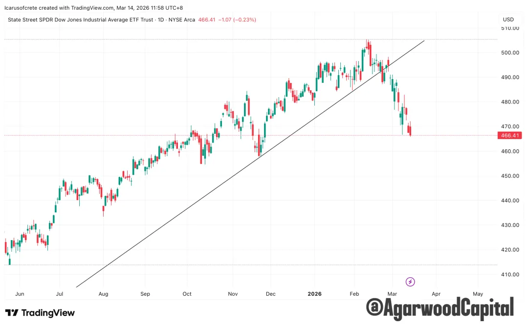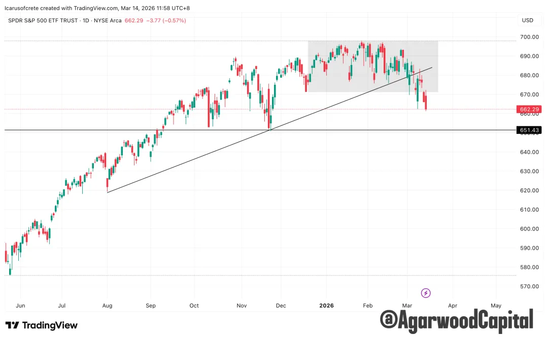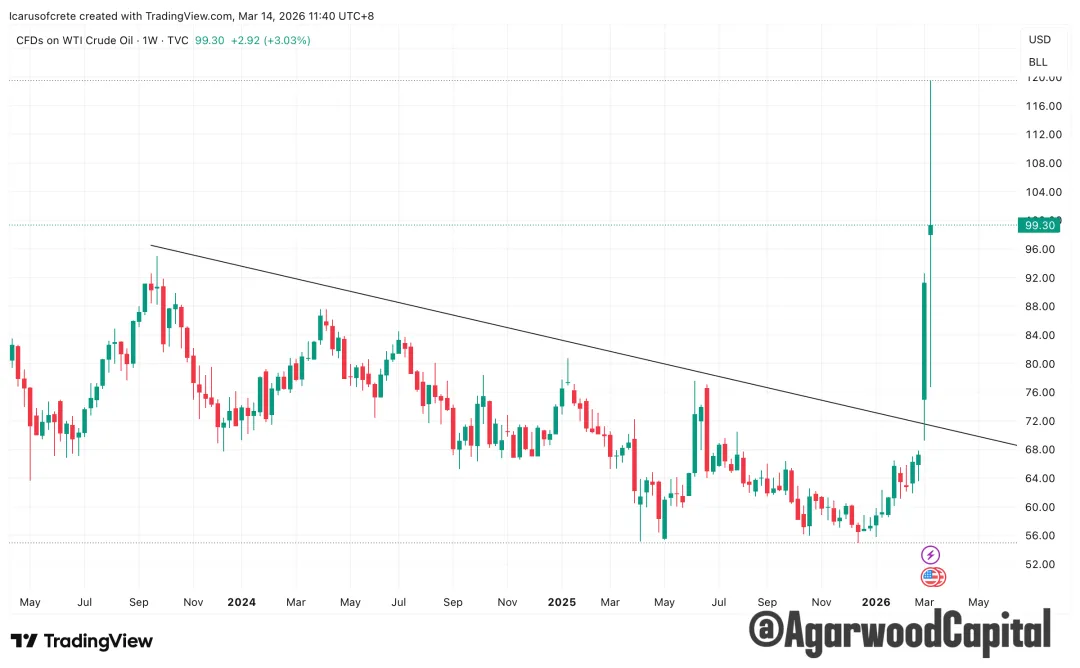 因此,我們認為,上次是衝高後10天內回落的脈衝行情;這次很可能是持續數月的結構性上移,衝突沒有可見的終點線,每一次「降溫」不是出逃窗口,而是補倉機會,油價$90-$110不是尾部風險,是基本情景,金銀的地緣溢價同樣難以快速消退,而美股,在結構性偏空的情況下,下行壓力更大了,演繹一波深度回調的概率提升了。」