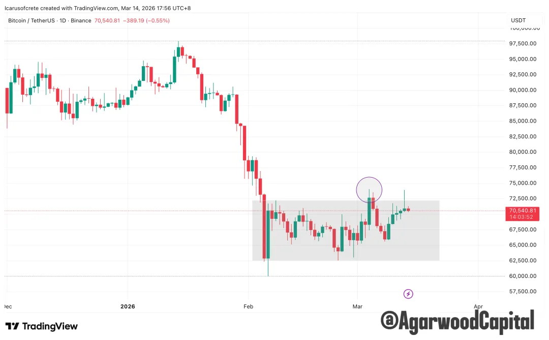 (關於為何伊朗局勢持續下,BTC漲黃金跌,參見報告《為何BTC漲而黃金跌:位置、倉位、宏觀衝擊與定價程度》),但最終整體仍受制於美股弱勢,我們認為,在美股深度回調的情況下,BTC很難維持強勢,預計會向下測試區間底部區域62500-60000的關鍵支撐。