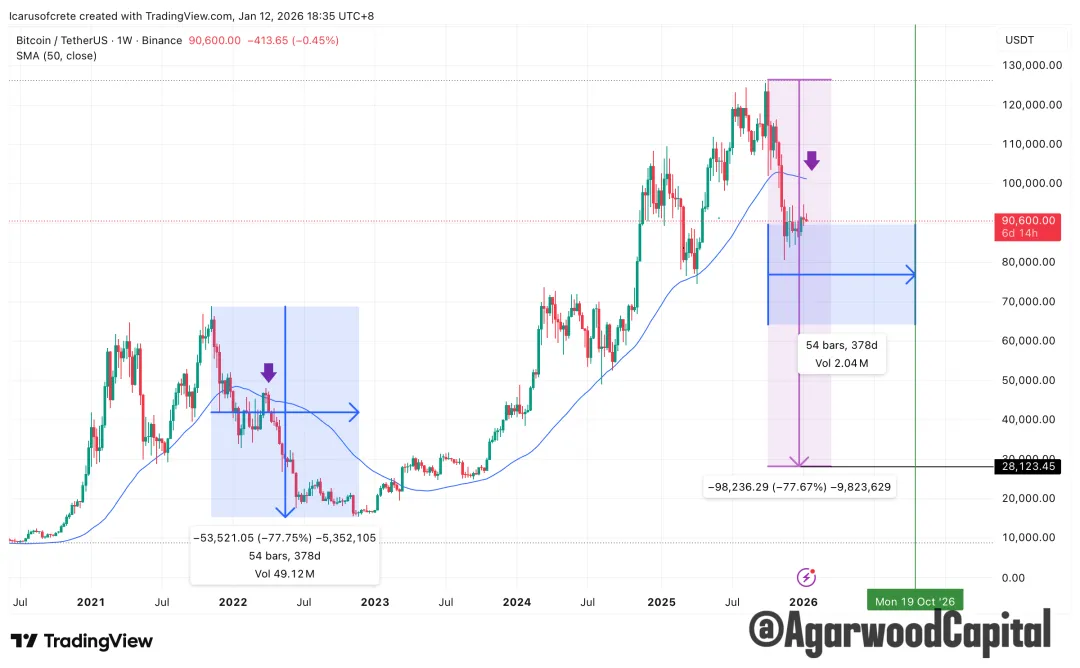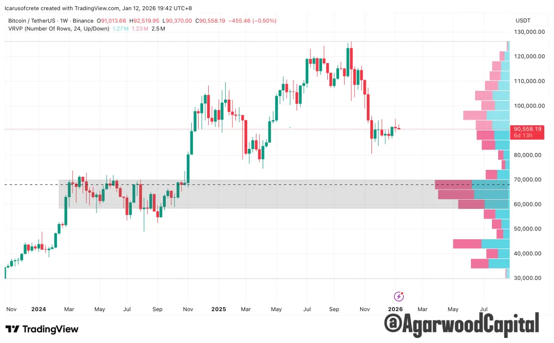 我們在1月12日發佈的《BTC中期趨勢分析報告》指出:「熊市的可能目標區域是58K-70K」。