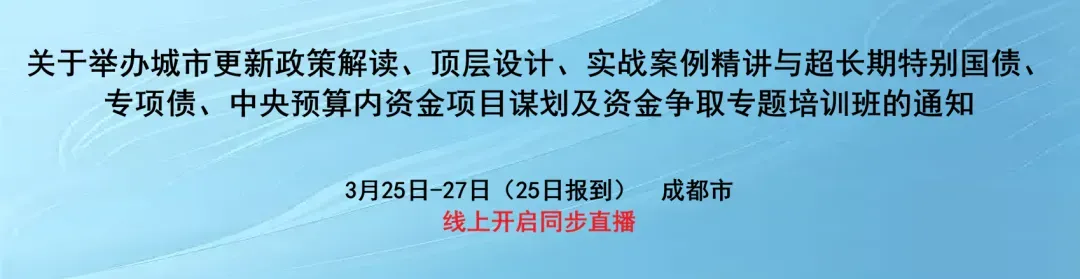关于举办城市更新政策解读、顶层设计、实战案例精讲与超长期特别国债、专项债、中央预算内资金项目谋划及资金争取专题培训班的通知