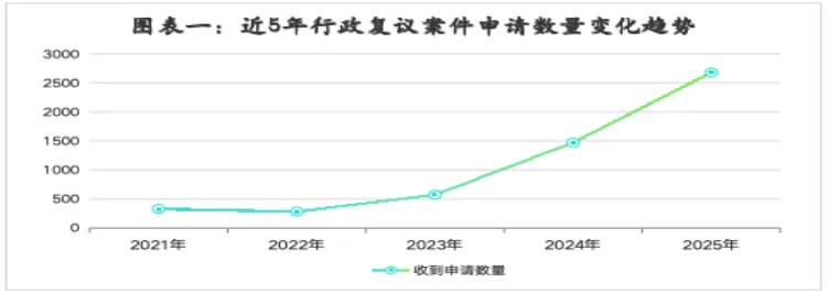 2025年度,全省各级行政复议机关共收到行政复议申请2675件,与2024年度收到行政复议申请1469件相比,同比增长82.1%。其中,依法受理2056件,同比增长63.8%;不予受理344件,审结1938件,办结案件2282件。(图表一)