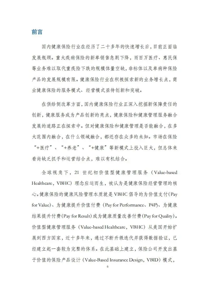 报告由前海再保险研究院于 2024 年 12 月发布,聚焦价值型健康管理服务(VBHC),系统梳理其起源、海外实践、国内探索与发展建议,为国内健康险转型提供方向。