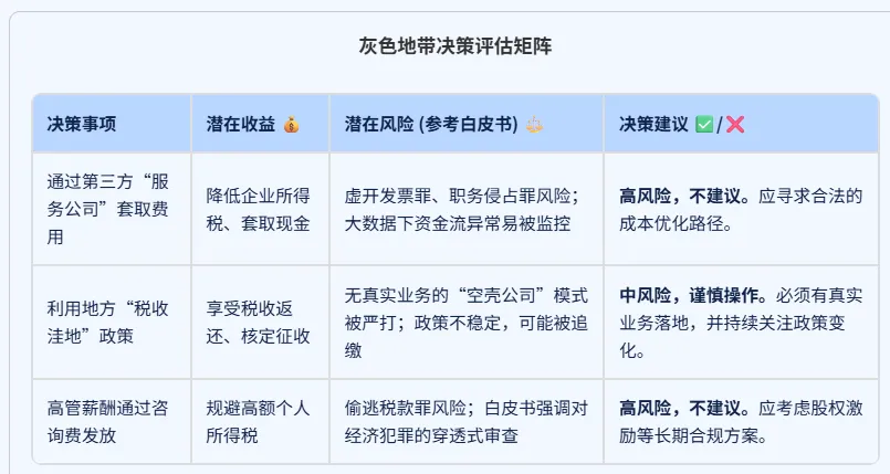 过去的“税务规划”可能更多是在法律边缘寻找节税空间,甚至不惜制造复杂的交易结构来规避监管。而现在,企业家需要建立“合规优先,风险可控”的财税管理思维。任何一项商业决策,都应将财税风险作为重要的评估维度。