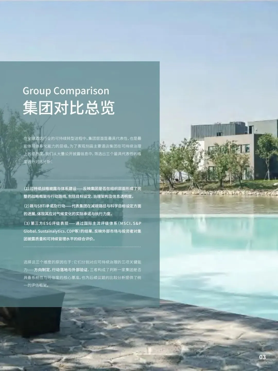 报告以全球 14 家主流酒店集团、62 个核心品牌为样本,从集团、品牌、单店三层维度,系统评估酒店业在可持续发展领域的战略、绩效与落地实践,揭示行业从合规披露向价值创造转型的核心趋势与分层格局。