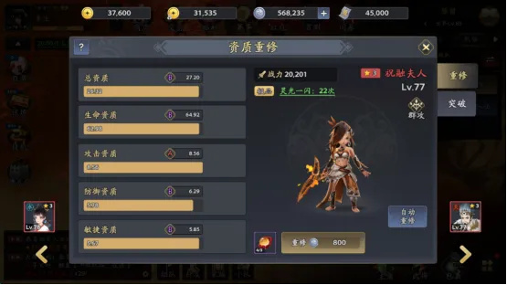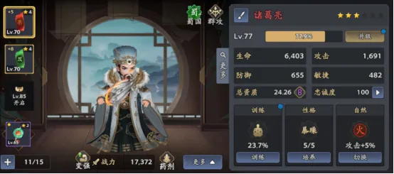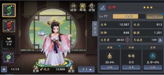 65级主线完成后,解锁的性格机制也可以让武将全方位提升,另外训练提升技能和属性;使用“重修丹”有机会触发“灵光一闪”,突破资质上限!