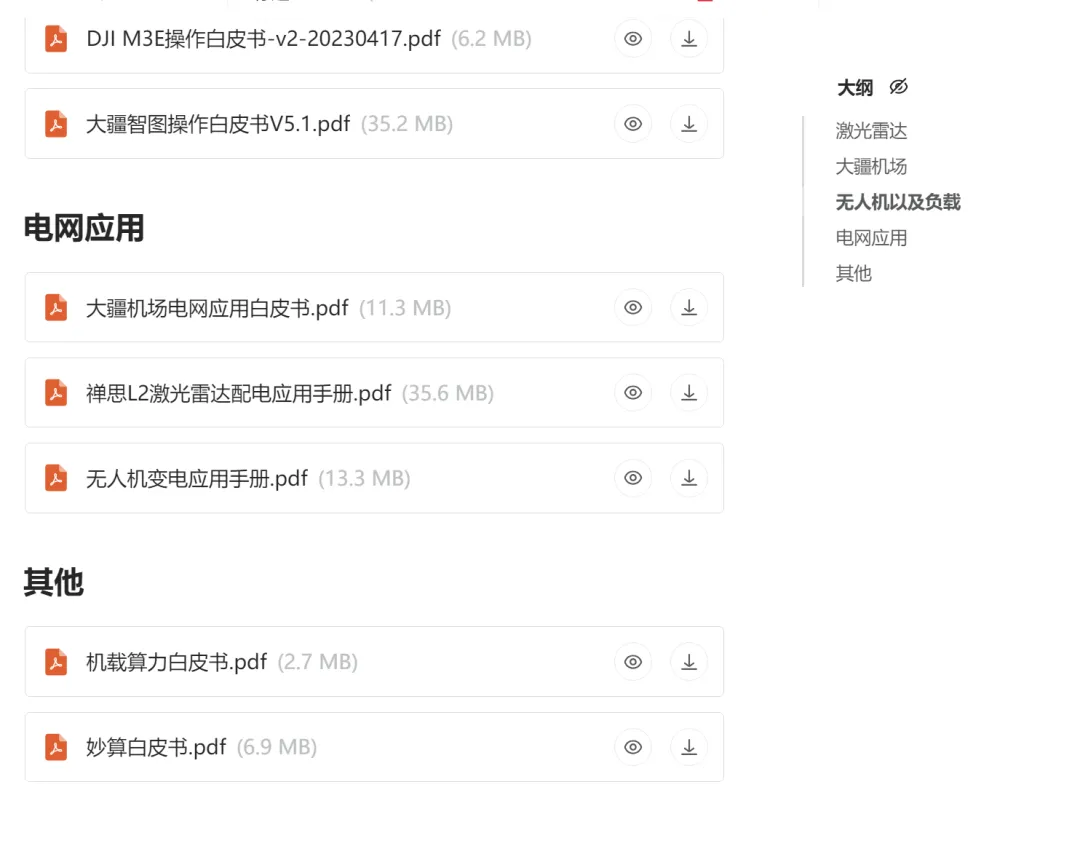 做无人机行业应用、电网测绘、航测建模的朋友看过来!整理了超全大疆官方产品白皮书 / 操作手册,从激光雷达(禅思 L3/L2/L1)、大疆机场(3/2 代),到无人机负载(P1/M3E)、大疆智图,还有电网配电 / 变电专属应用手册、机载算力 / 妙算技术文档,全系列官方资料一次性打包,都是实操落地的核心干货,不用再全网零散找资源~