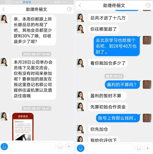 最后一个曝光的案例,是荐股分成骗局。一些机构在社交平台发布“内幕消息”或“精准选股”,吸引投资者加入群聊。随后通过所谓“老师指导”,让投资者加大资金投入。