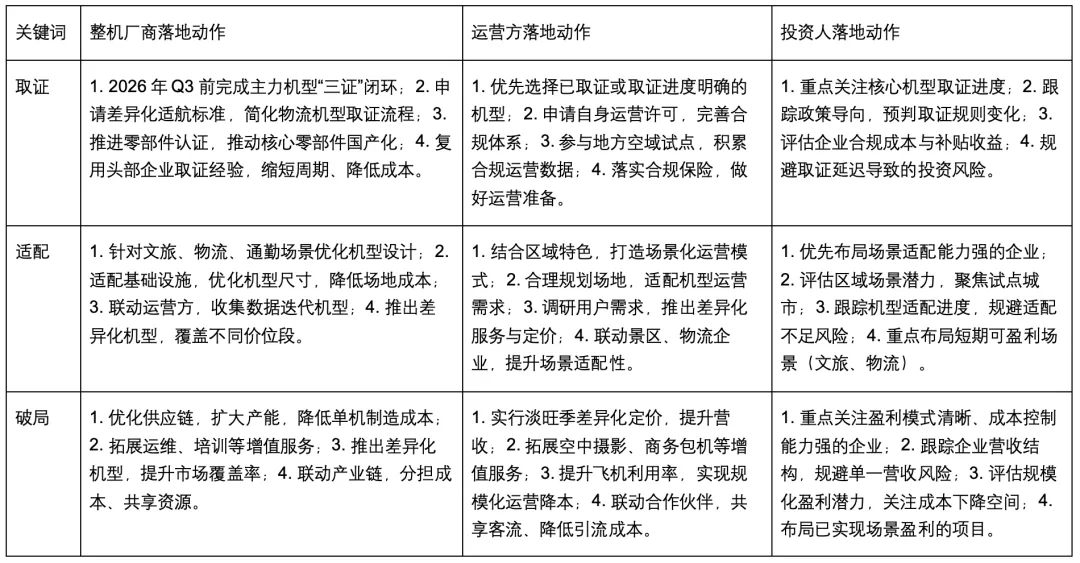 二、2026 eVTOL商业化5大核心关键词:落地动作深度拆解(可直接落地执行)