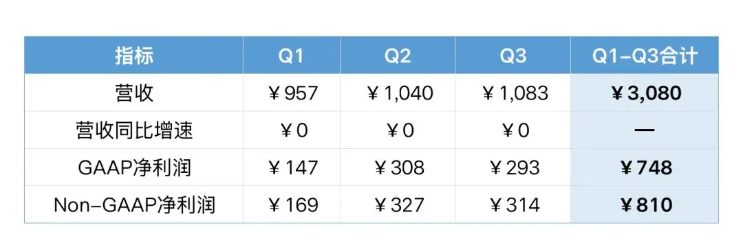 自然年2025年Q1-Q3利润对比(单位:亿元人民币)