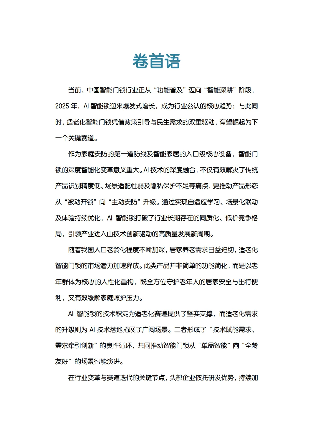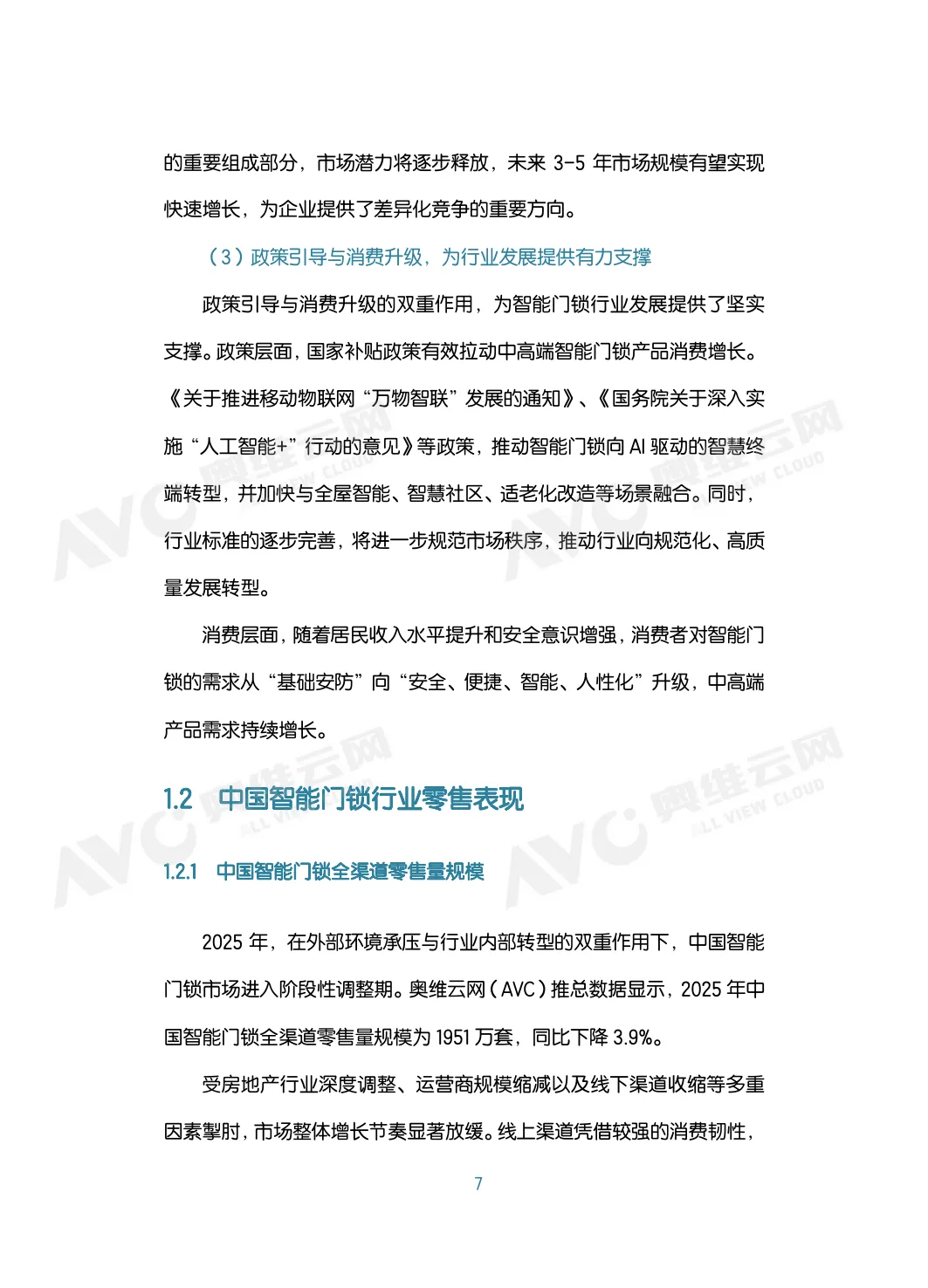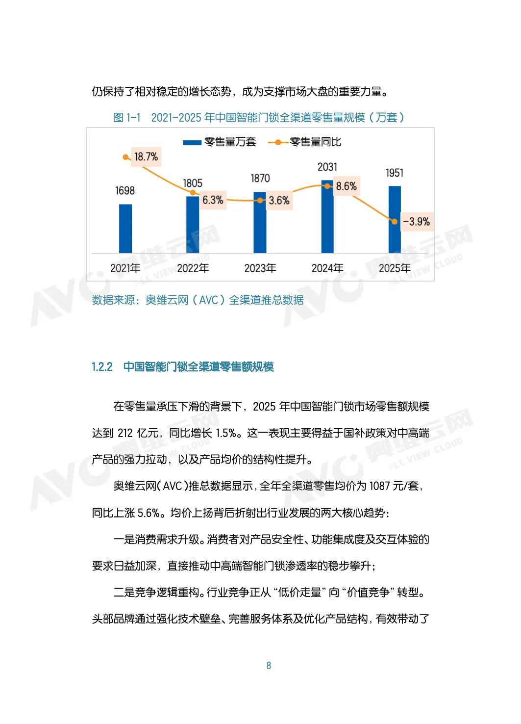 报告由奥维云网发布,指出中国智能门锁行业正从