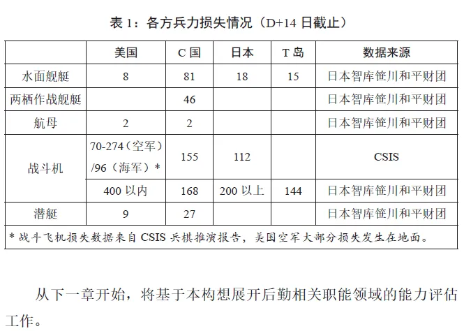 在构想编写方面,本研究以美国国际与战略问题研究中心(CSIS)和日本笹川和平财团的两份台海冲突兵棋推演报告为基础,同时结合大量的研究报告、演训报道、领导人发言等公开资料,编写了一份2.5万字的构想,涵盖了背景、基本态势和意图、兵力编成、美军作战行动阶段等六个构想要素,为后勤能力评估提供了重要的作战场景。