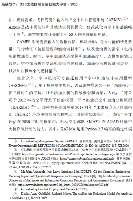 在数据处理方面,本研究充分挖掘开源情报的价值,以美军条令、智库研究报告、演训信息和历史数据为重点,通过类比、套用、换算等方法,获取了需求(运力、加油)测算和模型运算所需的相对可靠的数据。