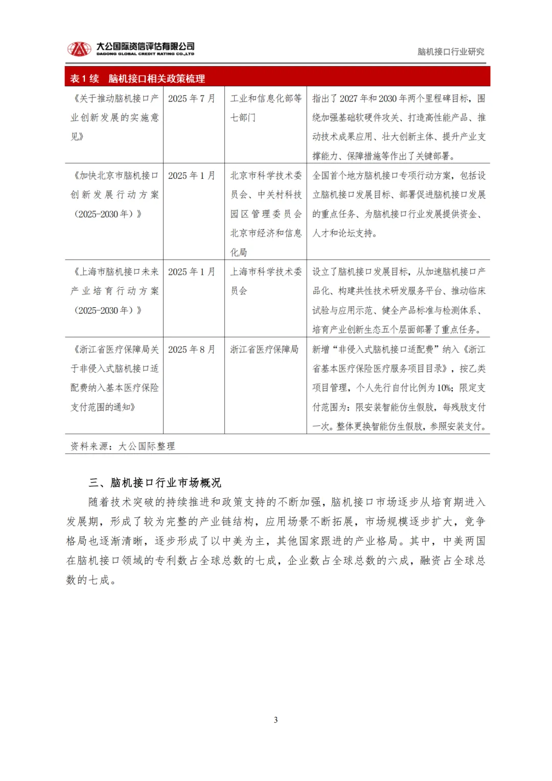脑机接口(BCI)作为神经科学与信息科技交叉融合的战略性新兴技术,通过建立大脑与外部设备的直接通信通路,突破了传统人机交互的生理局限,在医疗康复、消费电子等领域具有广泛应用前景。本文系统阐释了脑机接口行业的定义、分类标准与技术体系,梳理了中央与地方协同的政策支持体系,剖析了产业链结构和市场规模增长趋势,分析了产业发展面临的挑战,并提出分阶段的发展建议。
