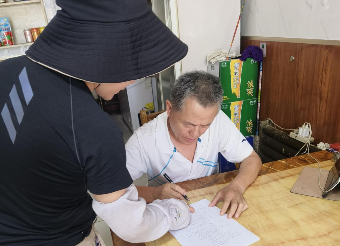 巡查过程中,清宇社区工作人员严格查看辖区内超市、餐饮从业人员是否持有有效健康证明,食品经营者有无进货台账、是否存在“三无”、过期、变质、假冒伪劣食品等情况,针对巡查过程中发现的问题进行记录并限期整改。
