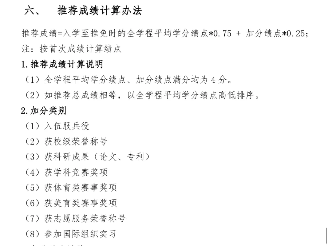 推荐成绩=入学至推免时的全学程平均学分绩点*0.75 + 加分绩点*0.25