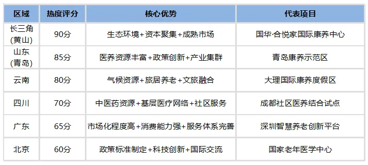 基于政策提及频次、地方专项规划数量、试点项目投资规模等维度,2025-2026年区域康养政策热度呈现阶梯式分布: