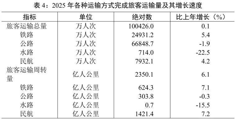 全年旅客运输总量10.0亿人次,比上年增长0.1%。旅客运输周转量2350.1亿人公里,增长6.1%。