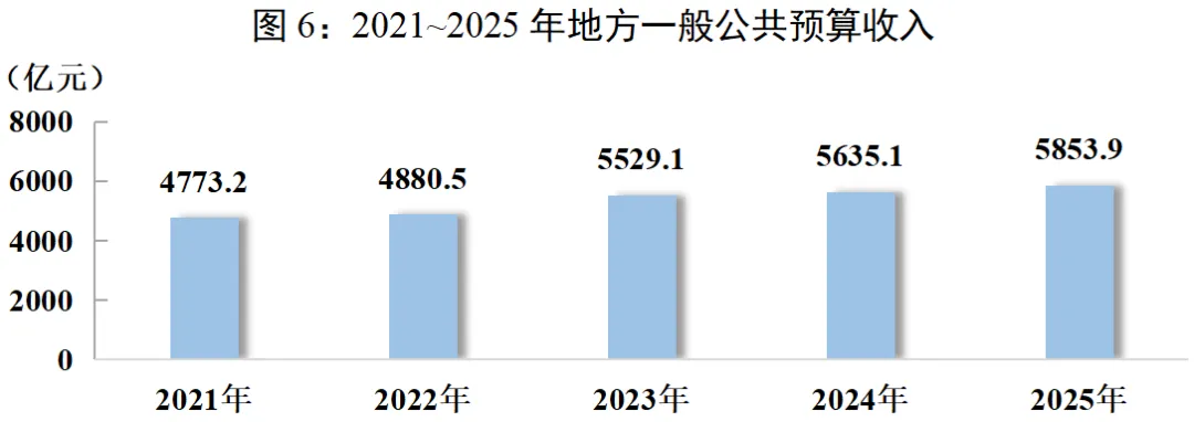 全年地方一般公共预算收入5853.9亿元,比上年增长3.9%,其中,税收收入3732.1亿元,增长3.6%。一般公共预算支出13697.6亿元,增长1.9%。