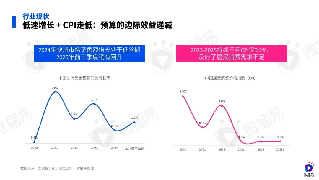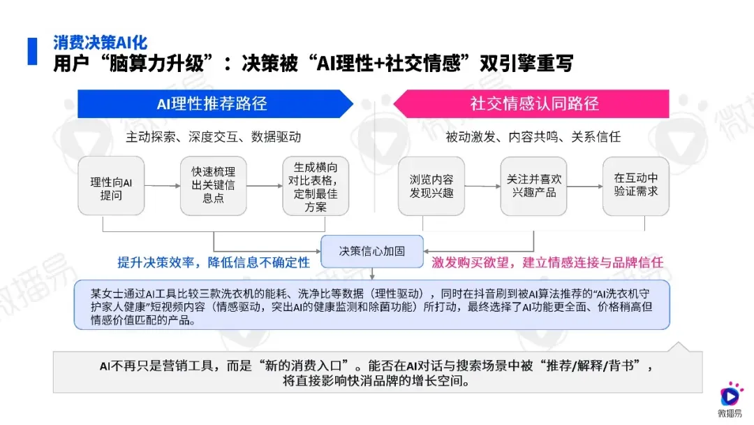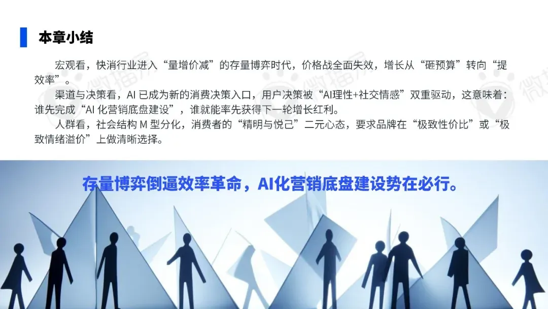 2026 年快消行业告别人口、渠道等传统红利,进入量增价减的存量博弈阶段,M 型消费趋势凸显,消费者同时追求质价比与心价比,购买行为少量高频,决策也被 AI 理性和社交情感双重驱动,传统降价、砸预算的营销模式失效,AI 成为品牌提效增长的核心抓手。