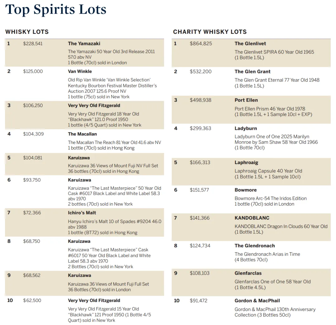 2025年烈酒拍卖价格TOP 10与慈善拍卖TOP 10: