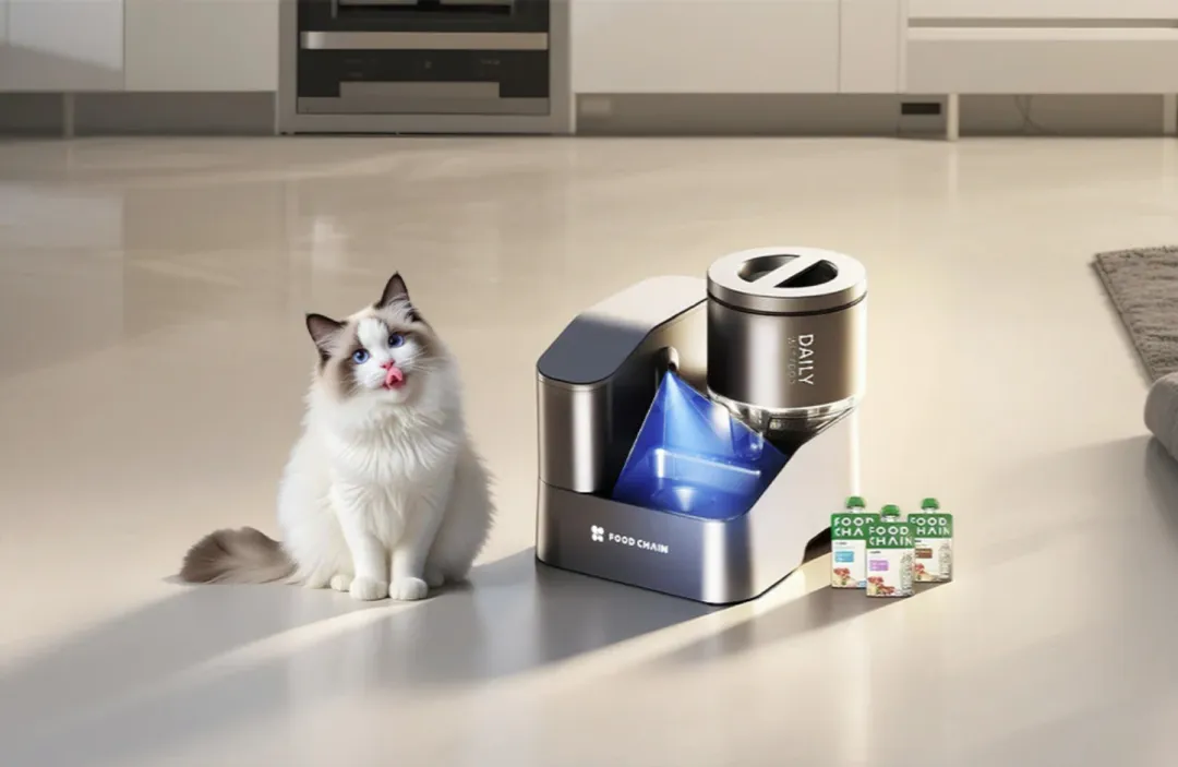 智能宠物喂食器产品图,展示AI技术如何提升宠物护理智能化水平。