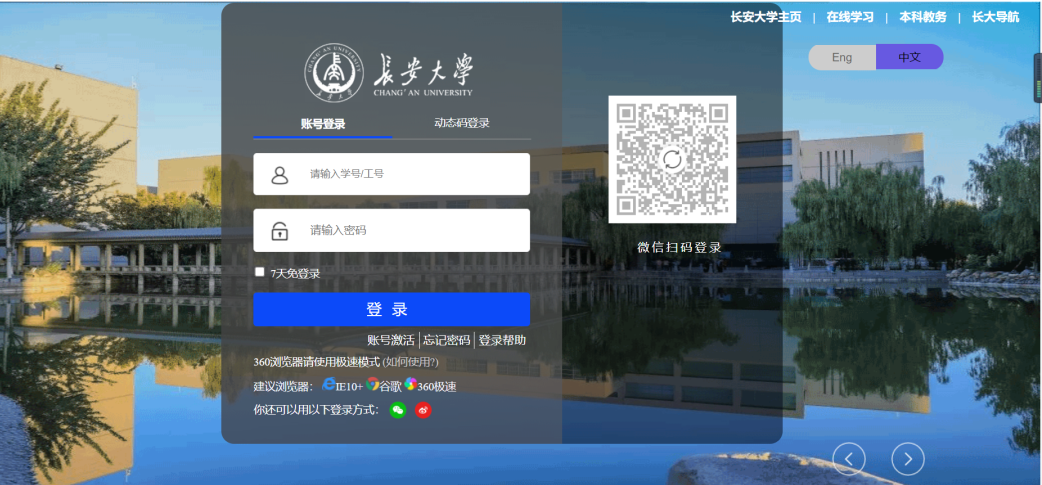 新生登录迎新网站(域名http://hello.chd.edu.cn/),点击登录框下方的“帐号激活”,按照步骤激活个人“统一身份认证”帐号,进入迎新网站填写家庭经济情况调查、补全个人信息、进行人像采集、查看宿舍信息、登记户口迁移证编号(不需要的可跳过)、申请绿色通道,按要求缴纳费用。迎新网站登录界面“帐号”为本人学号,有关报到流程、入学指南、交通住宿等信息和相关通知会通过迎新网站进行发布。