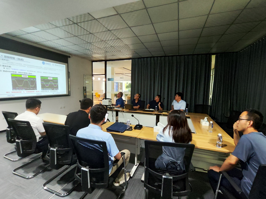 2023年8月17日,河创院创新团队负责人电气工程学院辛振教授带领思锐电力电子实验室团队成员走进石家庄科林电气股份有限公司进行项目中期汇报。会上,思锐电力电子实验室团队汇报了各个工程问题的解决方案,公司副总裁陈贺认真听取了汇报内容,询问了在产品上的应用情况,高度评价了项目进展及成效,并感谢思锐电力电子实验室老师和同学们的努力和付出。辛振介绍了半年来双方合作从零开始的不易,同时也表达了通过参与此项目,实验室学生实践能力得到了很好的锻炼和提高,此次校企合作成效显著。