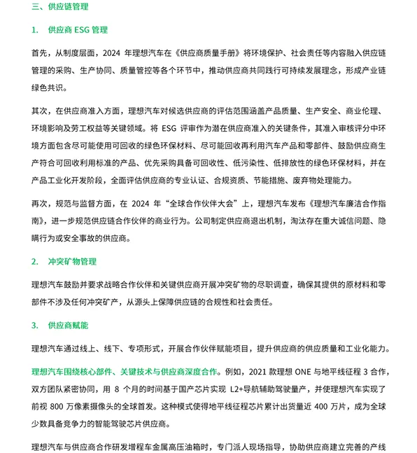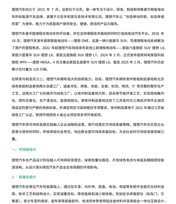 摘要:本报告系统讲解了11家国内外主流车企在新能源汽车电池领域的ESG实践案例,让行业从业者与投资者深入了解电池全生命周期的可持续发展技术与路径。案例涵盖理想、特斯拉、比亚迪等企业,聚焦绿色制造、电池回收、供应链责任、低碳技术创新等核心方向,呈现了轻量化设计、电池梯次利用、零碳工厂建设等落地成果,为新能源汽车行业ESG体系搭建与实践深化提供可借鉴的标杆参考。