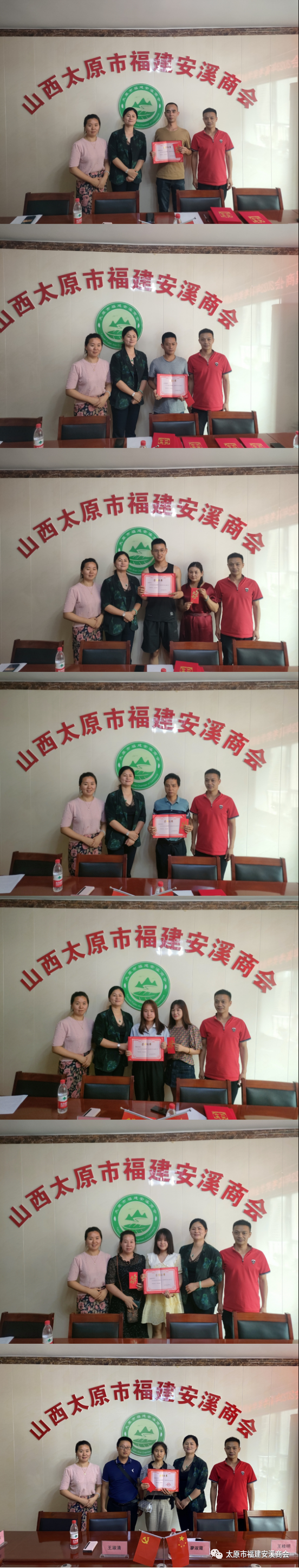 寒窗苦读,今朝瞩目。在商会颁奖领导及学子家长的见证下,依次为程全福之女程涵琪、王福成之子王坤鸿、王文坚之子王鹏、吴瑞原之女吴雨欣、谢东初之女谢诗晗、吴黎清之女洪雅琪、刘伟铷之女刘诗仪、吴敬喜之女吴雅萍进行奖学颁发。其中一本奖励每人2000元人民币。二本奖励每人1000元人民币。