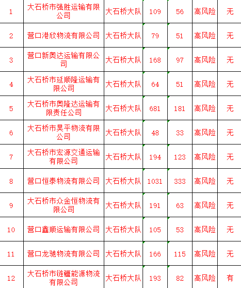 大石桥市12家高风险运输企业 | 大曝光