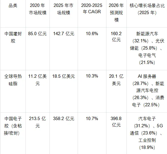 值得注意的是,高端产品(导热系数≥5W/(m·K)的导热硅脂、导热系数≥1.5W/(m·K)的灌封胶)的市场增速显著高于行业平均水平,2020-2025年CAGR达15.8%,预计2026年高端产品市场规模占比将突破35%。