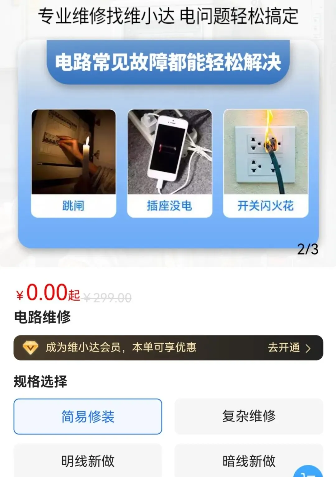 免收上门费: 凡最终由维小达承接维修的项目,一律免收上门费。