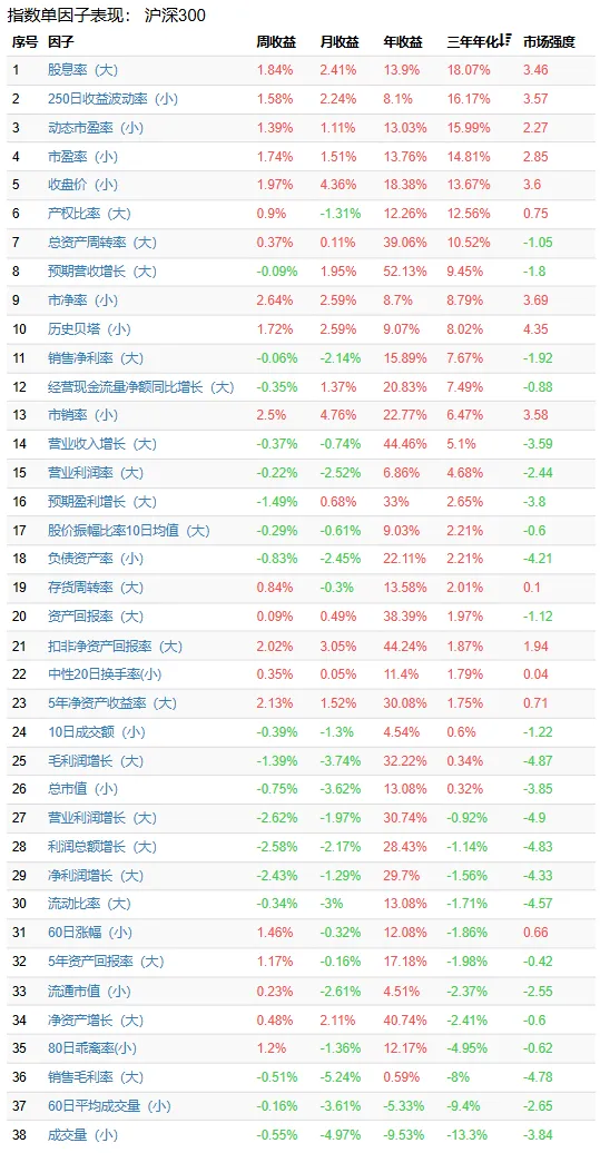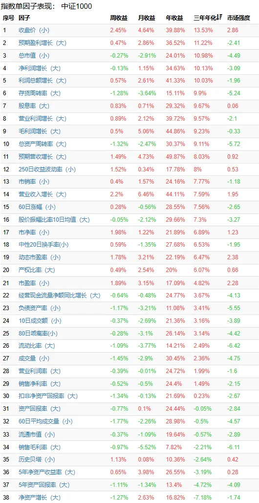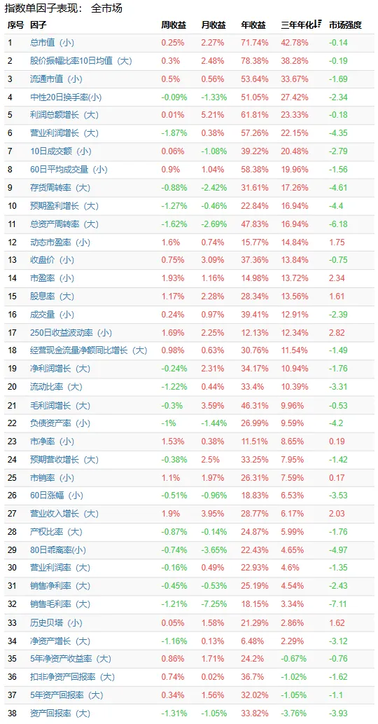 一年视角弱势因子“波动率(小)、市净率(小)”反映了牛市板轮动炒作行情以及上一年度低估值伴随红利行情修复以后不再有超额收益的回归。