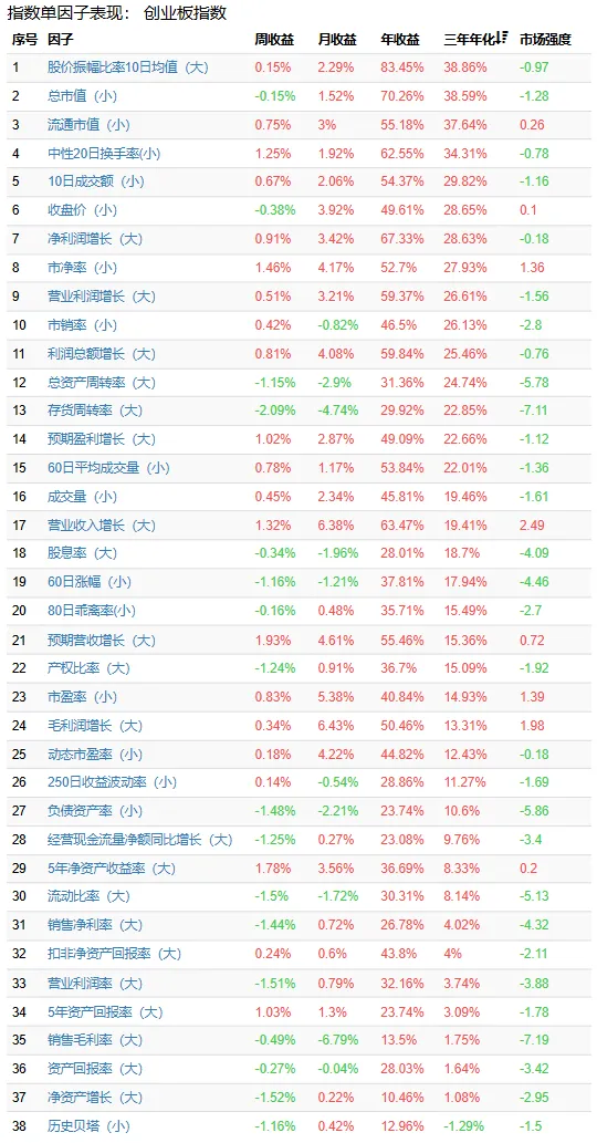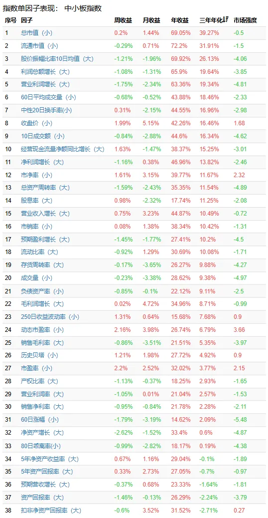 但是注意到低市盈率等因子在最后一列市场强度(算法见文章开头)的数据明显好转。即是近期