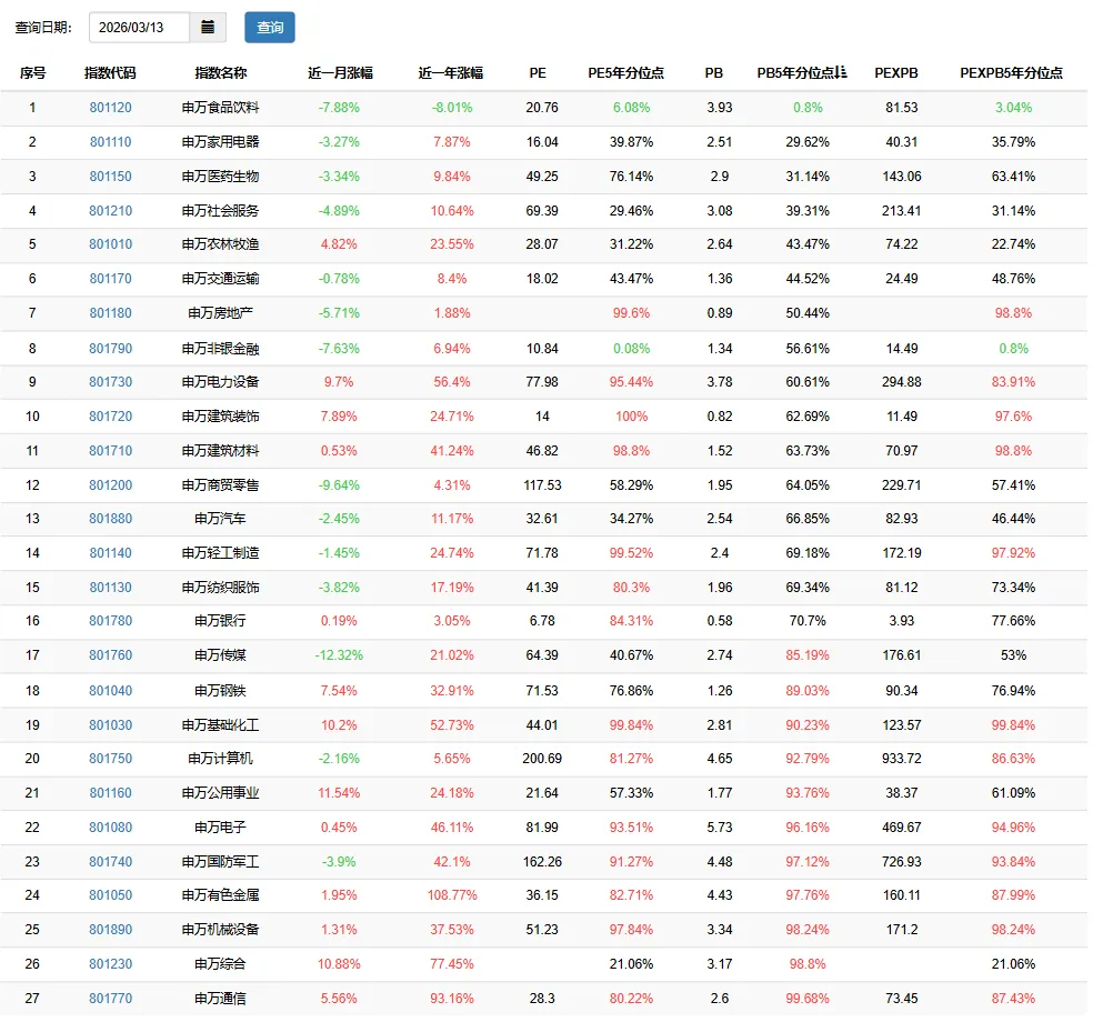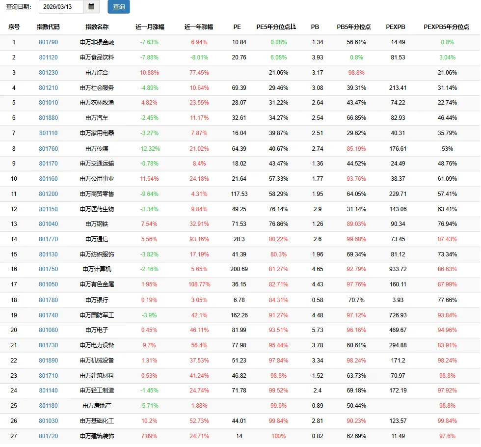 本文所有数据来源:果仁网,本期数据日期2026.03.13