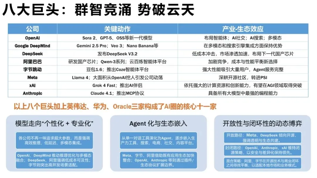 报告梳理了全球AI领域的八大巨头及其关键动作: