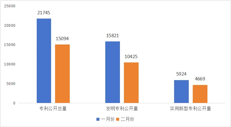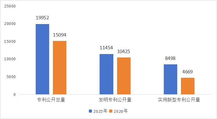 相较于2026年1月份专利公开总量同比下降30.59%,发明专利同比下降34.11%,实用新型同比下降21.19%。