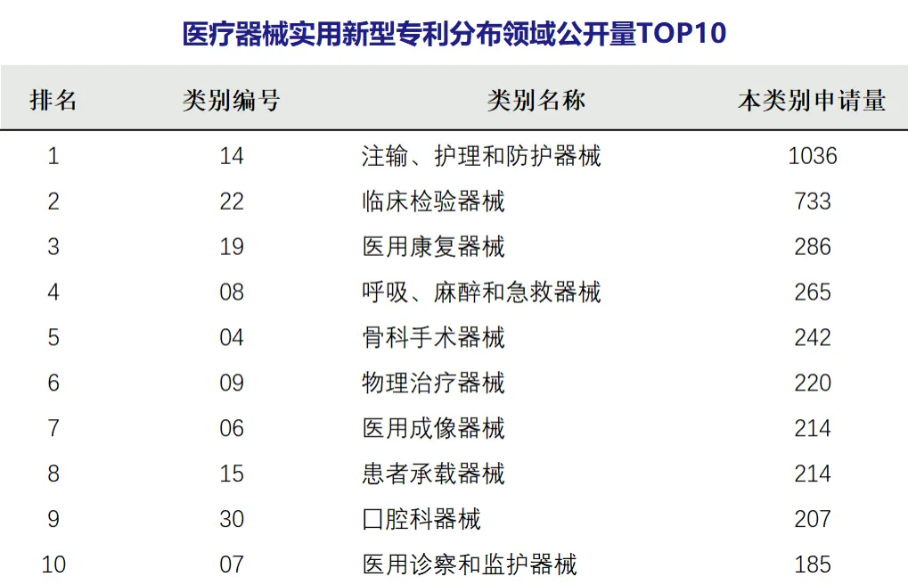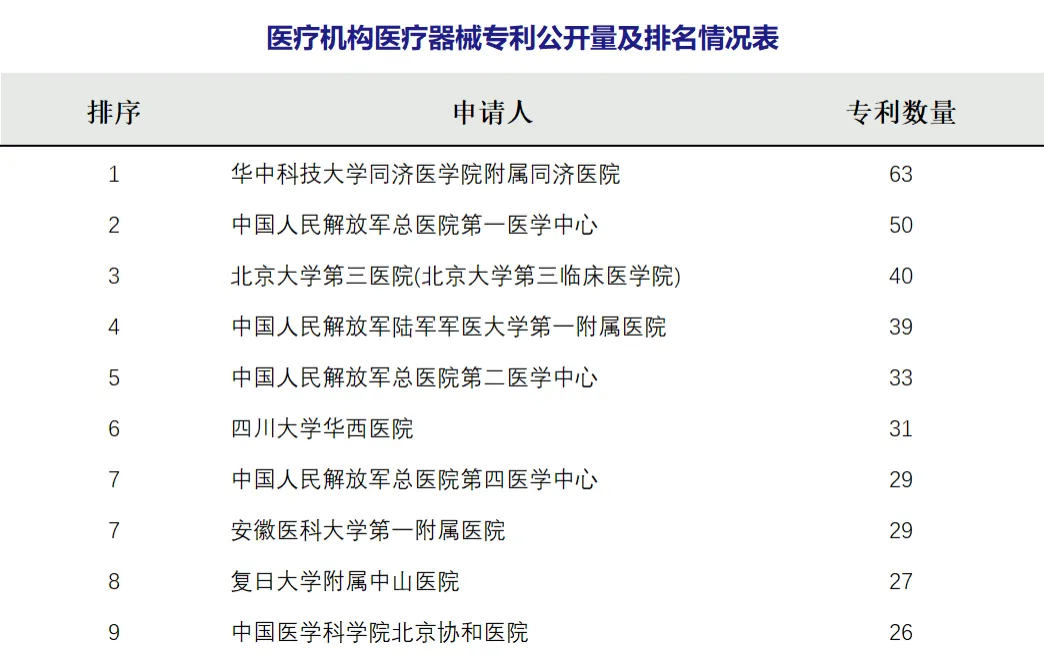 本期医疗机构医疗器械专利公开前十: