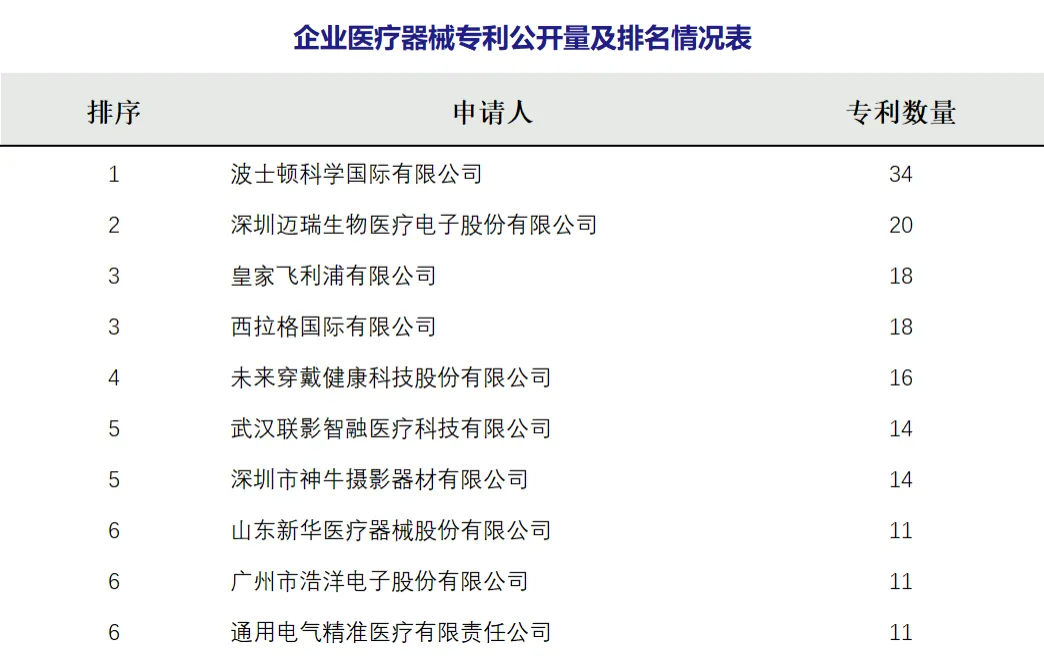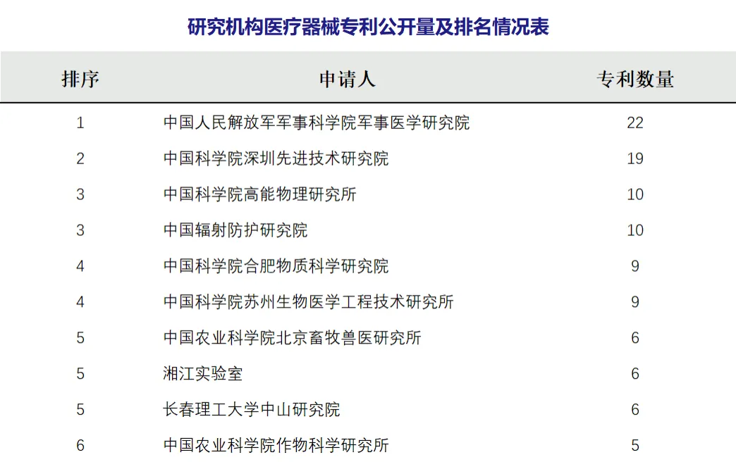 本期研究机构医疗器械专利公开前十:
