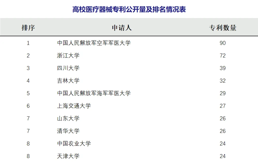 本期高校医疗器械专利公开前十: