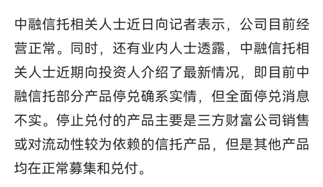 这两天中融信托做了这样的回复: