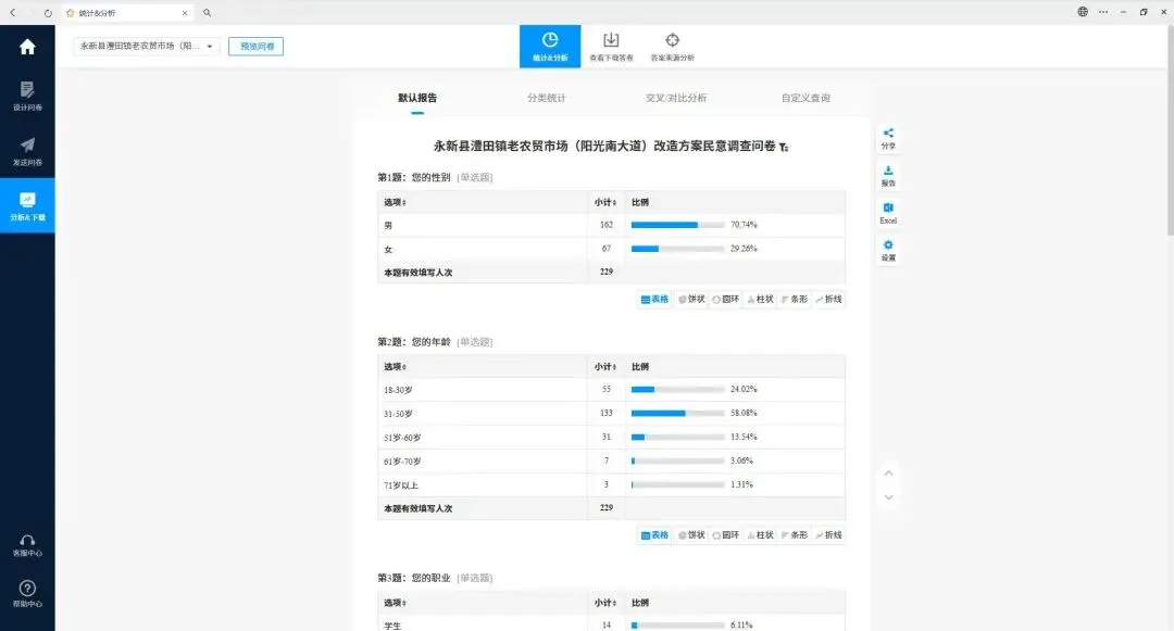 截止目前,后台累计收到问卷填写229份,具体情况如下图所示: