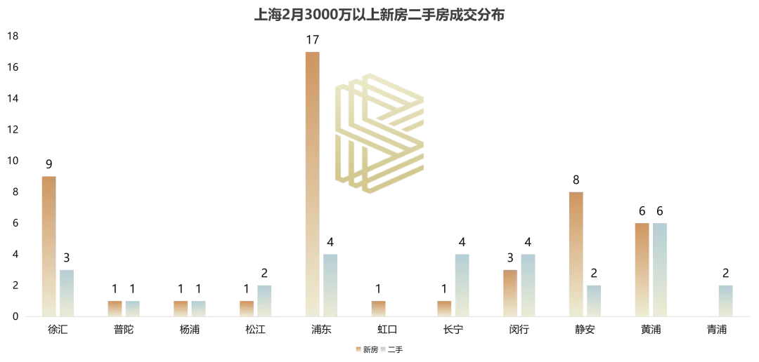 从区域来看,浦东新区以17套的成交量领先;徐汇、静安、黄浦等传统核心区同样表现稳健。