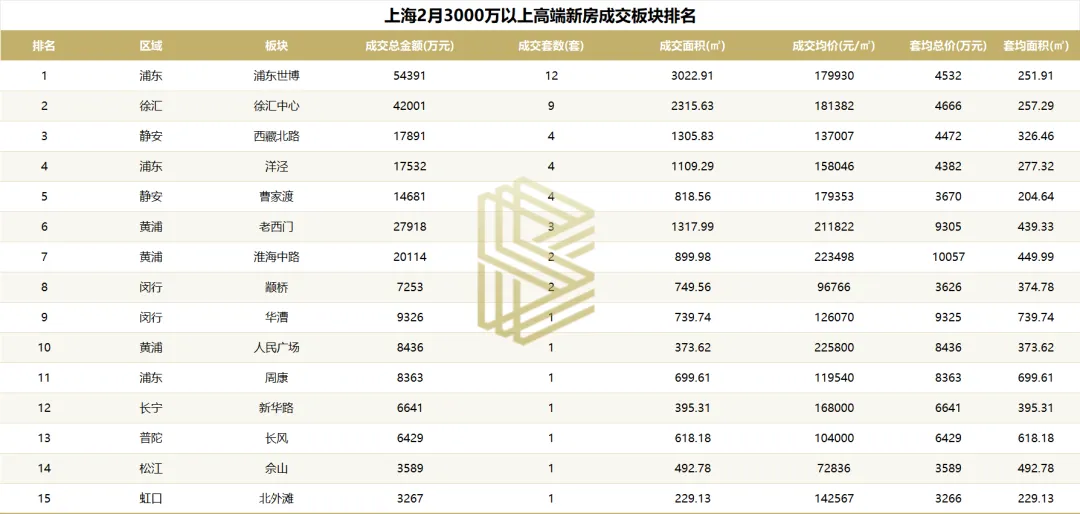 从板块来看,浦东世博、徐汇中心、静安西藏北路、浦东洋泾、静安曹家渡等板块为重点成交板块。