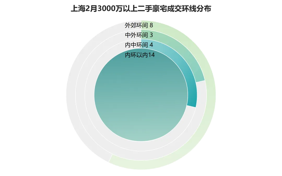 从环线结构看,内环内成交14套,占比近半,依然是高端置业的首选之地。