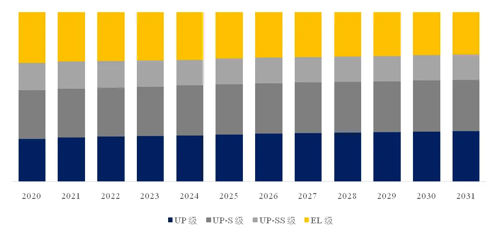 就产品类型而言,目前UP-S 级是最主要的细分产品,占据大约29.5%的份额。