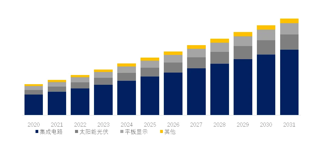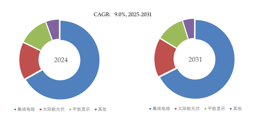 就产品应用而言,目前集成电路是最主要的需求来源,占据大约66.8%的份额。