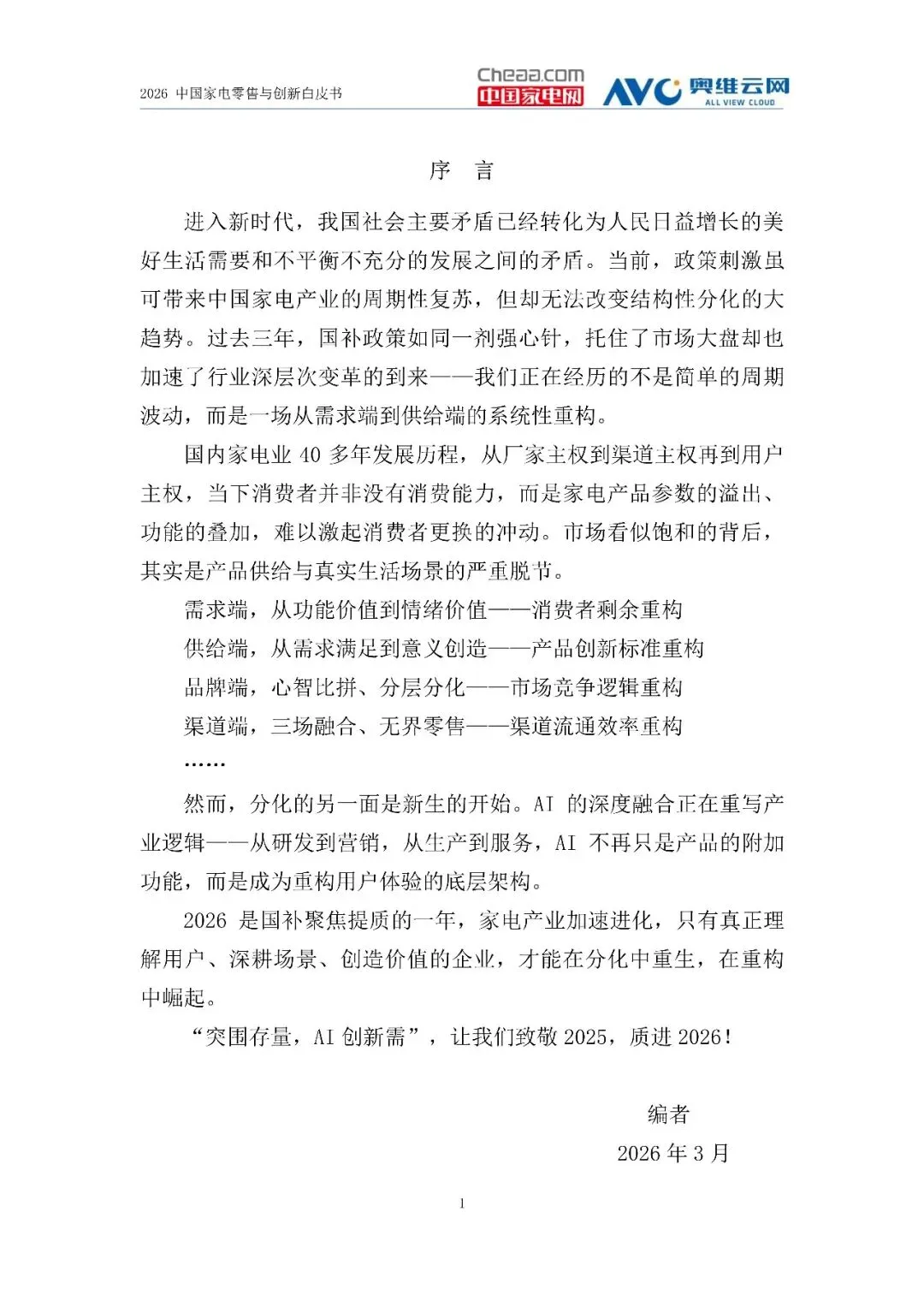白皮书提出,企业应降低预期,寻找结构性机会,坚持长期主义,以AI引领产业协同,构建智慧家庭新生态。通过精耕细作、日变日新,破解供需错配,以饱和创新、需求创造破卷前行。未来,AI赋能的深度个性化、可持续性、全球化深度本土化将成为家电企业的核心竞争力。