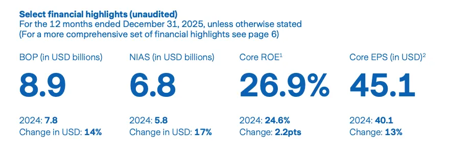 ✅ 核心ROE(Core ROE):26.9%,同比提升2个百分点,刷新自身纪录;